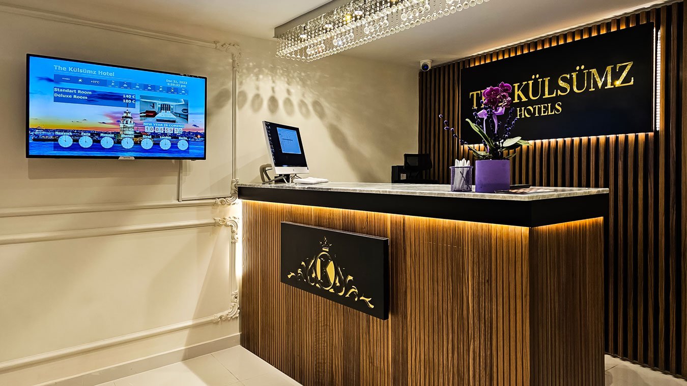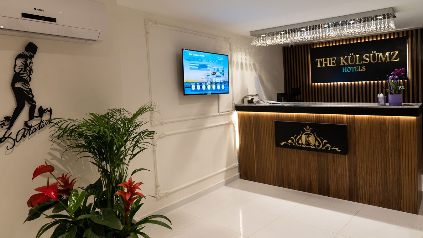 The Külsümz Hotels misafirlerine, otele giriş yapılan ilk saniyeden itibaren görsel bir şölen ile hoş geldiniz demektedir. Otelcilik sektörünün en iyilerinden birisi olmak, hoş bir karşılamanın deneyimini yaşayın...