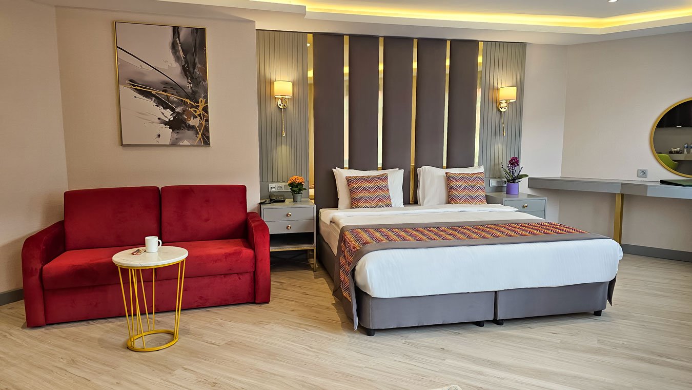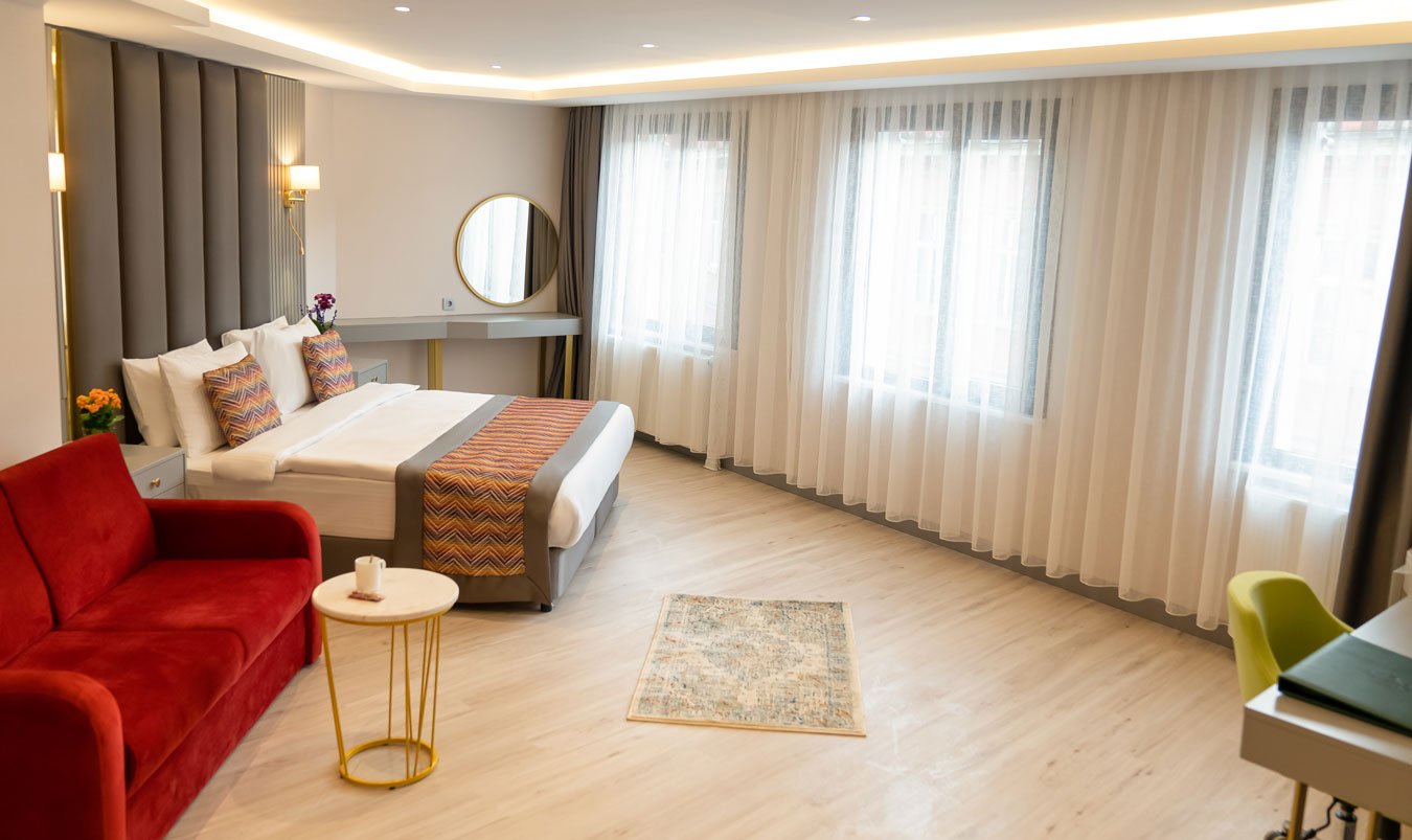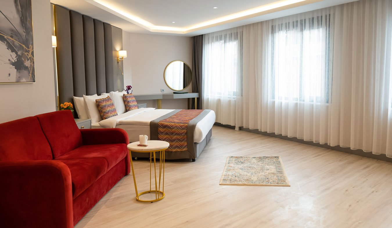 The Külsümz Hotel Deluxe Room, odalarımızda özel ve konforlu konaklama deneyimi sizi bekliyor. İstanbul’un kültür, sanat, eğlence ve alışveriş merkezlerine ev sahipliği yapan tarihi yarımadanın içerisinde yer alan The Külsümz Hotel konaklamanın keyfini yaşamanız için her detayı sizler için düşünüldü.
