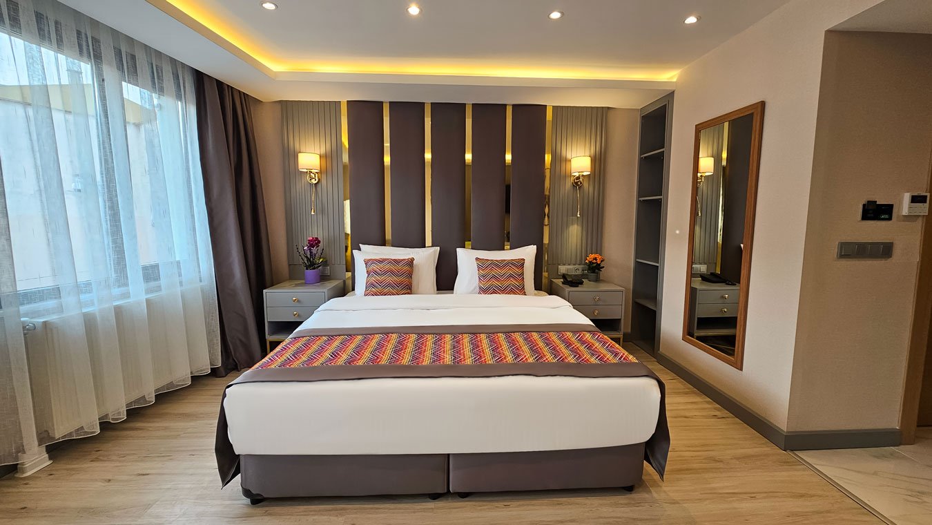 The Külsümz Hotel Luxury Room, odalarımızda özel ve konforlu konaklama deneyimi sizi bekliyor. İstanbul’un kültür, sanat, eğlence ve alışveriş merkezlerine ev sahipliği yapan tarihi yarımadanın içerisinde yer alan The Külsümz Hotel konaklamanın keyfini yaşamanız için her detayı sizler için düşünüldü.